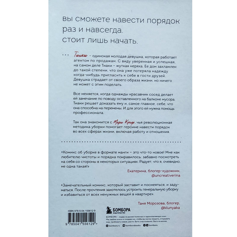Все меняется, когда красавчик-сосед делает замечание по поводу оставленного мусора на балконе. Тиаки решает доказать ему и, самое главное – себе, что она способна на перемены. А для этого ей нужна помощь профессионала. Так она знакомится с Мари Кондо, чья революционная методика уборки помогает героине навести порядок во всех сферах жизни, включая работу и отношения.