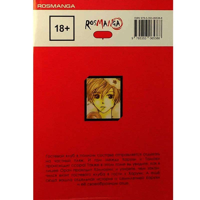 Гостевой клуб в полном составе отправляется отдыхать на частный пляж. И там между Харухи и Тамаки происходит ссора! Также в этом томе вы увидите, как в лицее Оран проходит Хэллоуин, и узнаете, чем закончился визит гостевого клуба в гости к Харухи. А ещё сюда вошла отдельная история о семилетней Харухи и её своеобразном отце.