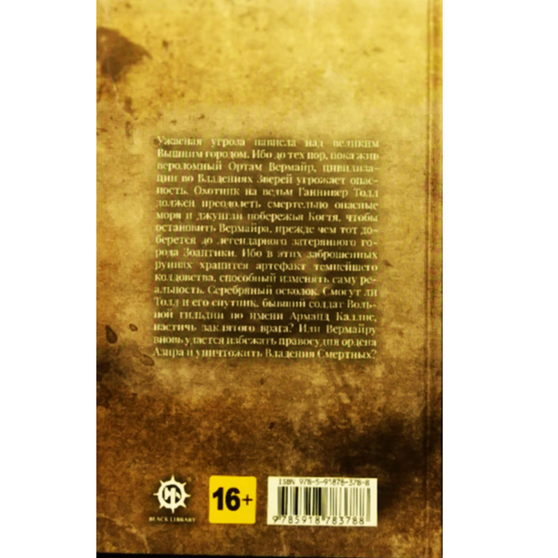 Ужасная угроза нависла над великим Вышним городом. Ибо до тех пор, пока жив вероломный Ортам Вермайр, цивилизации во Владениях Зверей угрожает опасность. Охотник на ведьм Ганнивер Толл должен преодолеть смертельно опасные моря и джунгли побережья Когтя, чтобы остановить Вермайра, прежде чем тот доберется до легендарного затерянного города Зоантики. Ибо в этих заброшенных руинах хранится артефакт темнейшего колдовства, способный изменять саму реальность. Серебряный осколок. Смогут ли Толл и его спутник, бывший солдат Вольной гильдии по имени Арманд Каллис, настичь заклятого врага? Или Вермайру вновь удастся избежать правосудия ордена Азира и уничтожить Владения Смертных?
