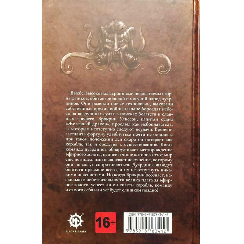 В небе, высоко над вершинами недосягаемых горных пиков, обитает молодой и могучий народ дуардинов. Они развили новые технологии, выковали собственные орудия войны и ныне бороздят небеса на воздушных судах в поисках богатств и славных трофеев. Брокрин Улиссон, капитан судна "Железный дракон", прослыл как небоплаватель, за которым неотступно следуют неудачи. Времени заставить фортуну улыбнуться почти не осталось: при таком положении дел скоро он потеряет как корабль, так и средства к существованию. Когда команда дуардинов обнаруживает месторождение эфирного золота, ценнее и чище которого этот мир еще не видел, ими овладевает искушение, которому они не могут сопротивляться. Дуардины жаждут богатств превыше всего, и их не отпугнуть никакими опасностями. Но когда Брокрин осознает, насколько в действительности велика плата за эфирное золото, успеет ли он спасти корабль, команду и самого себя или же будет слишком поздно?