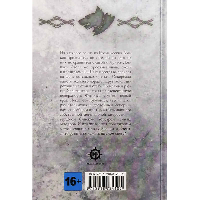 На каждого воина из Космических Волков приходится по саге, но ни одна из них не сравнится с сагой о Лукасе Ловкаче. Столь же прославленный, сколь и презираемый, Шакал всегда выделялся на фоне остальных братьев. Оскорбляя одного волчьего лорда за другим, он переходил из стаи в стаю. Но в самый разгар Хельвинтера, когда на заснеженную поверхность Фенриса ступает новый враг, Лукас обнаруживает, что на этот раз столкнулся с достойным соперником, способным противостоять даже его собственной легендарной хитрости, - герцогом Слиском, корсаром темных эльдаров. И кто же выйдет победителем в этой схватке между Волком и Змеем, а кто останется лежать на алом снегу?